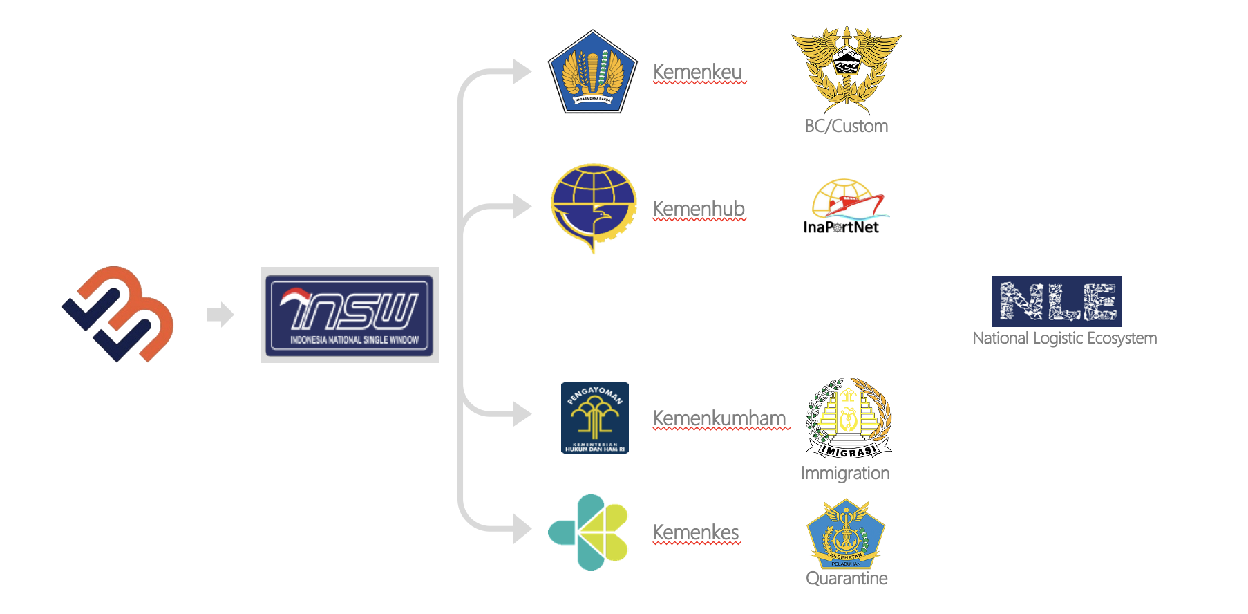 BLL will operate the system that interface with the respective authorities platform Indonesia National Single Window (INSW) system under the supervision of Indonesia Ministry of Finance. INSW will then connect BLL to other systems owned by the authorities related to port clearance such as Inaportnet system (Ministry of Transportation), Ceisa (Custom), Immigration (Ministry of Law and Human Rights), Quarantine (Ministry of Health), Harbor Master (KSOP) and Ministry of Marine Affairs and Fisheries